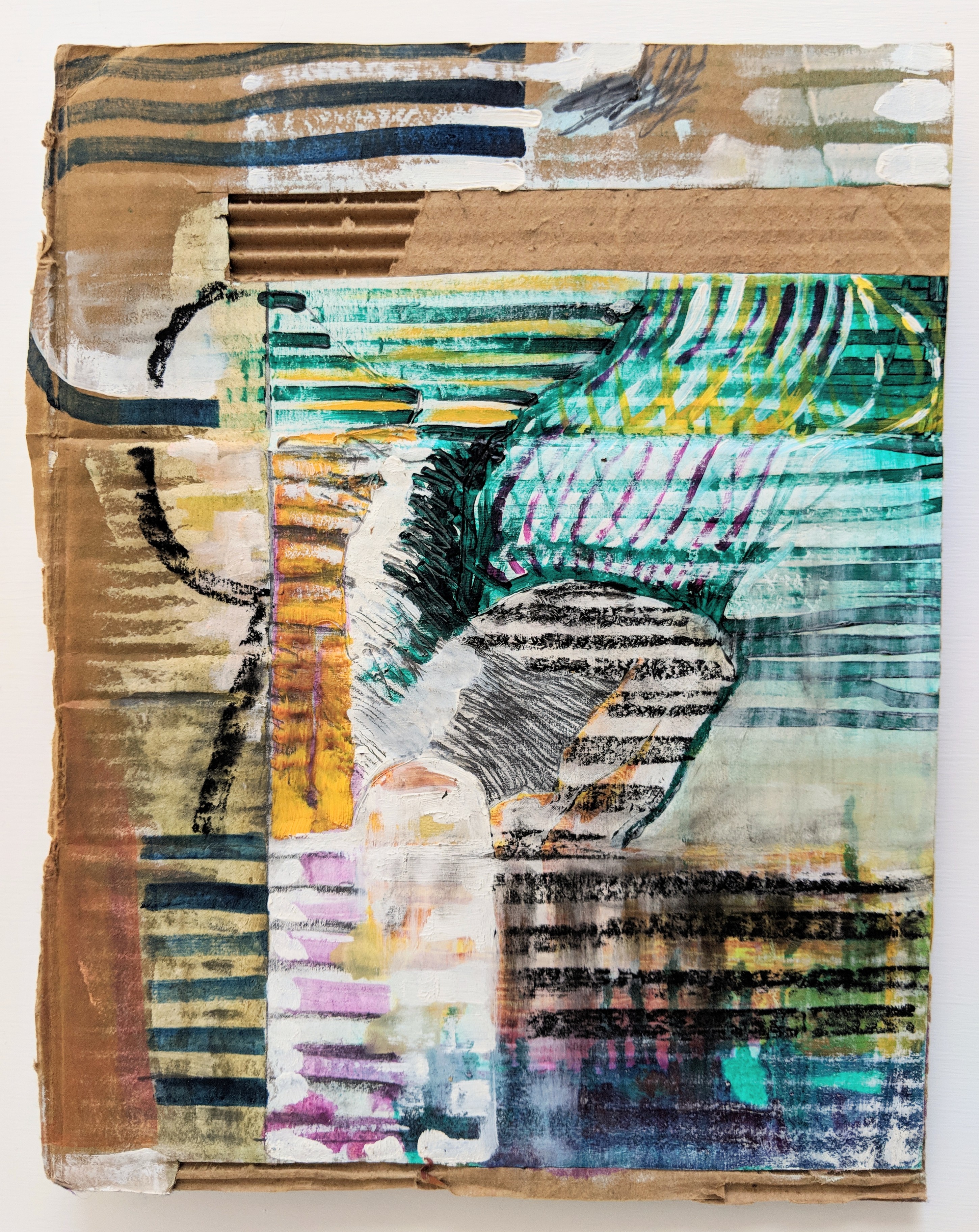 oil, charcoal, and pencil on cardboard, 14.5” x 11.5”