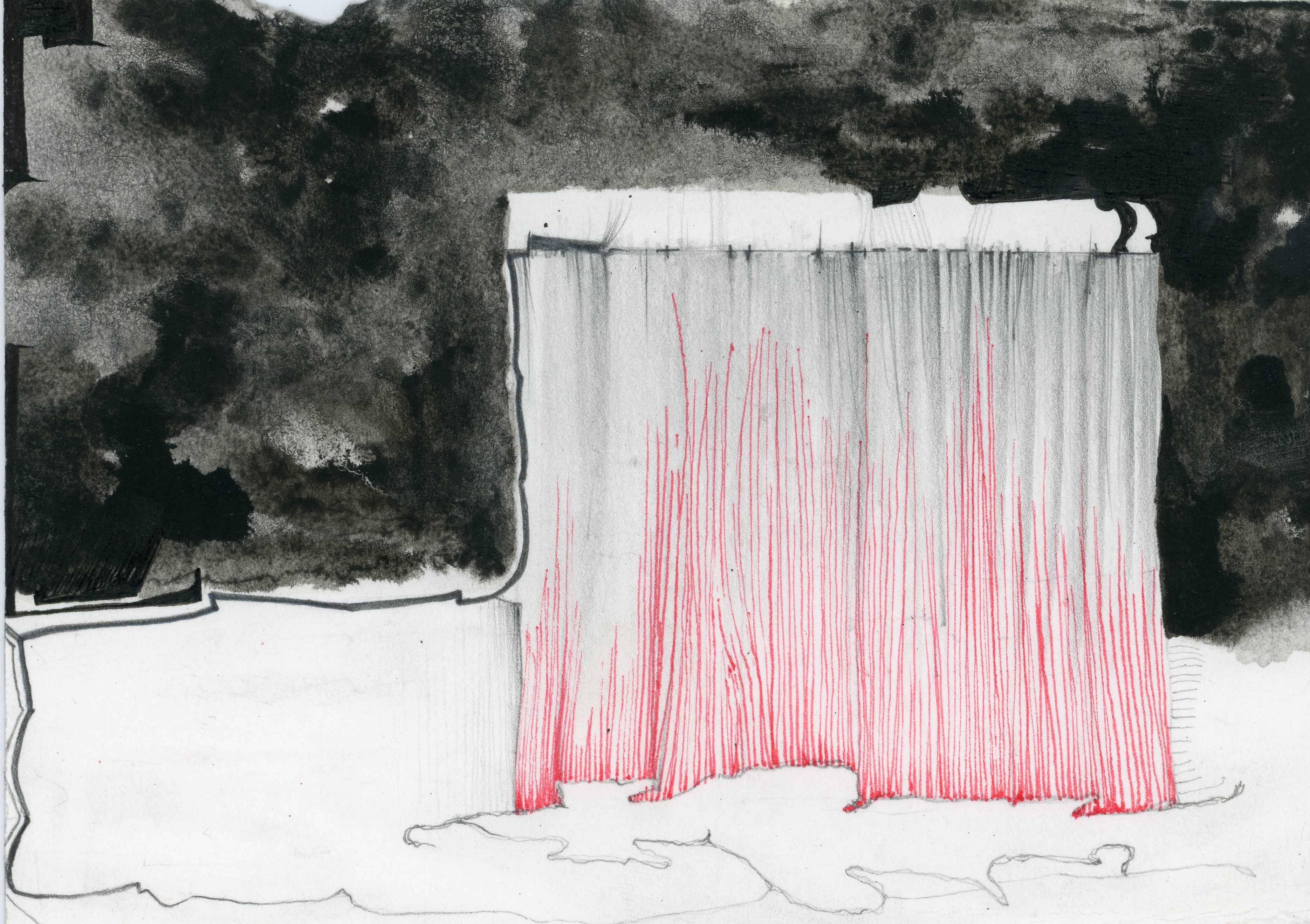 ink, pen, and pencil on paper, 4.5” x 6”