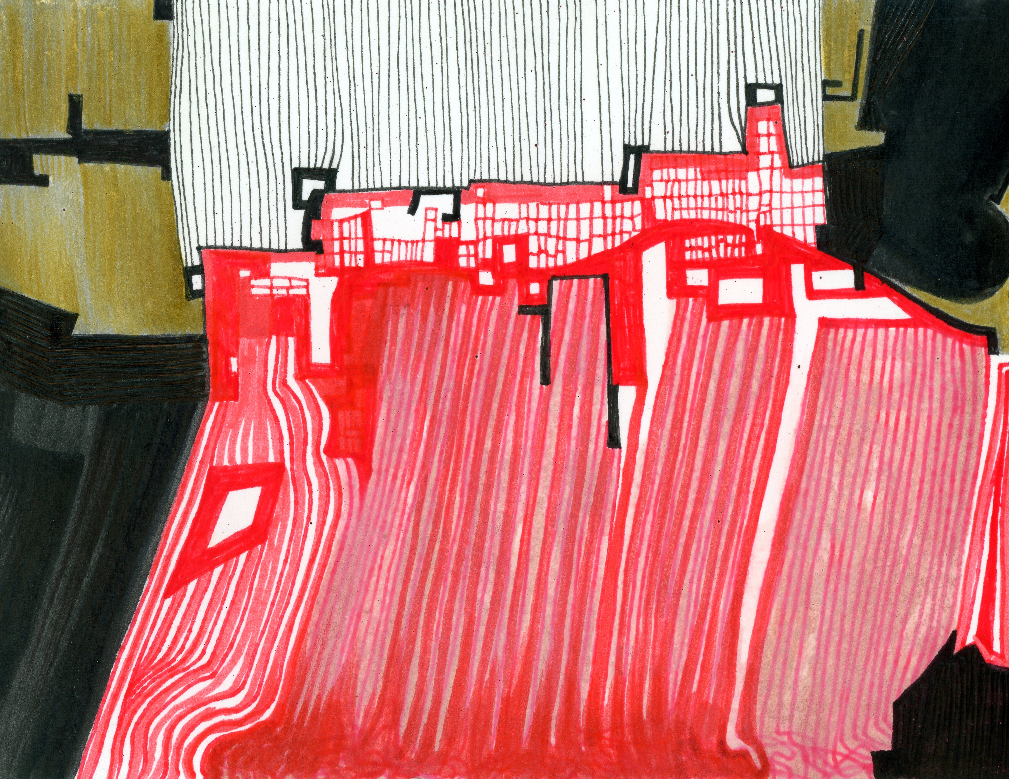 watercolor, pen, and marker on paper, 4.5” x 6”