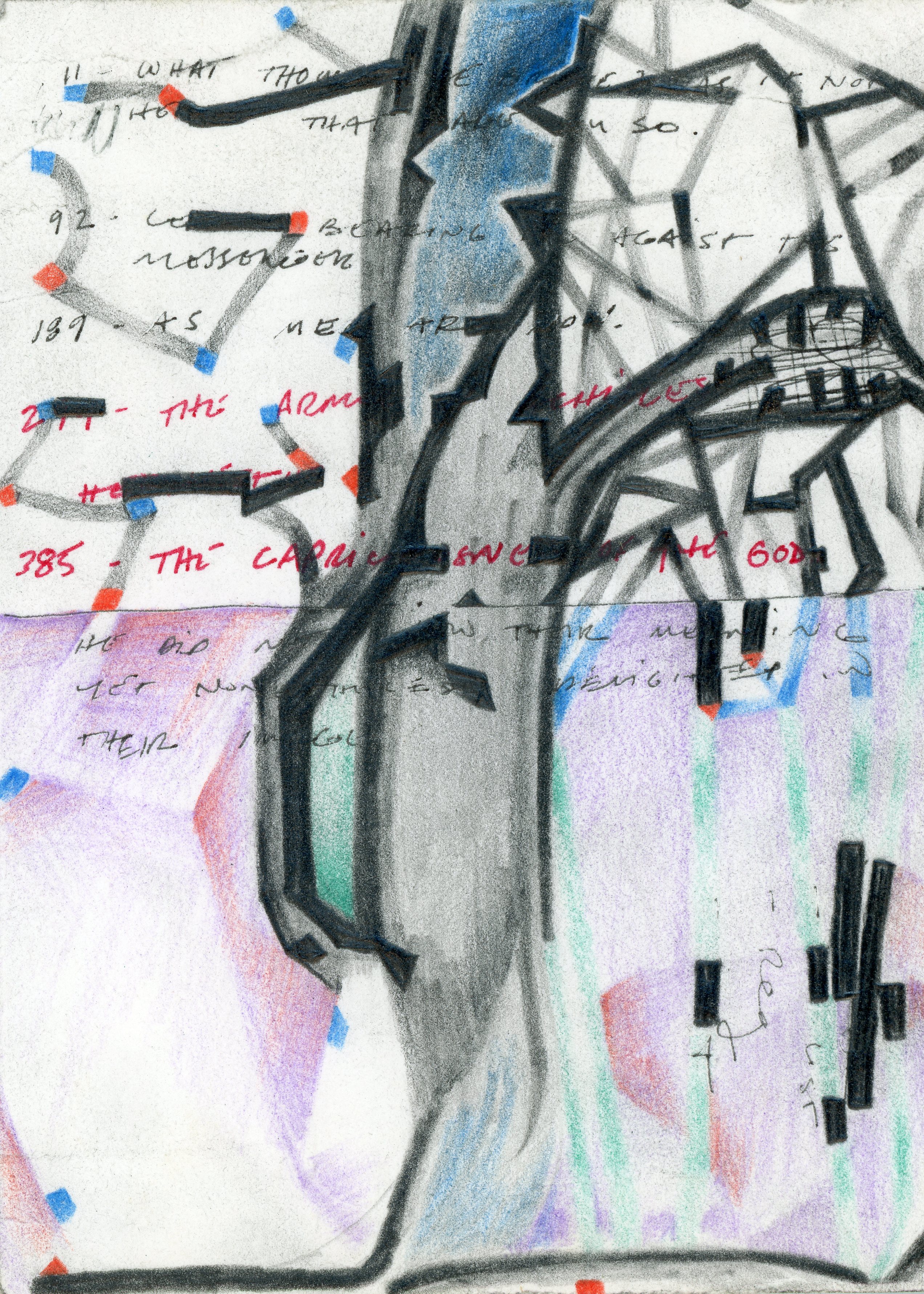 pencil, pen, and colored pencil on paper, 6” x 4.5”