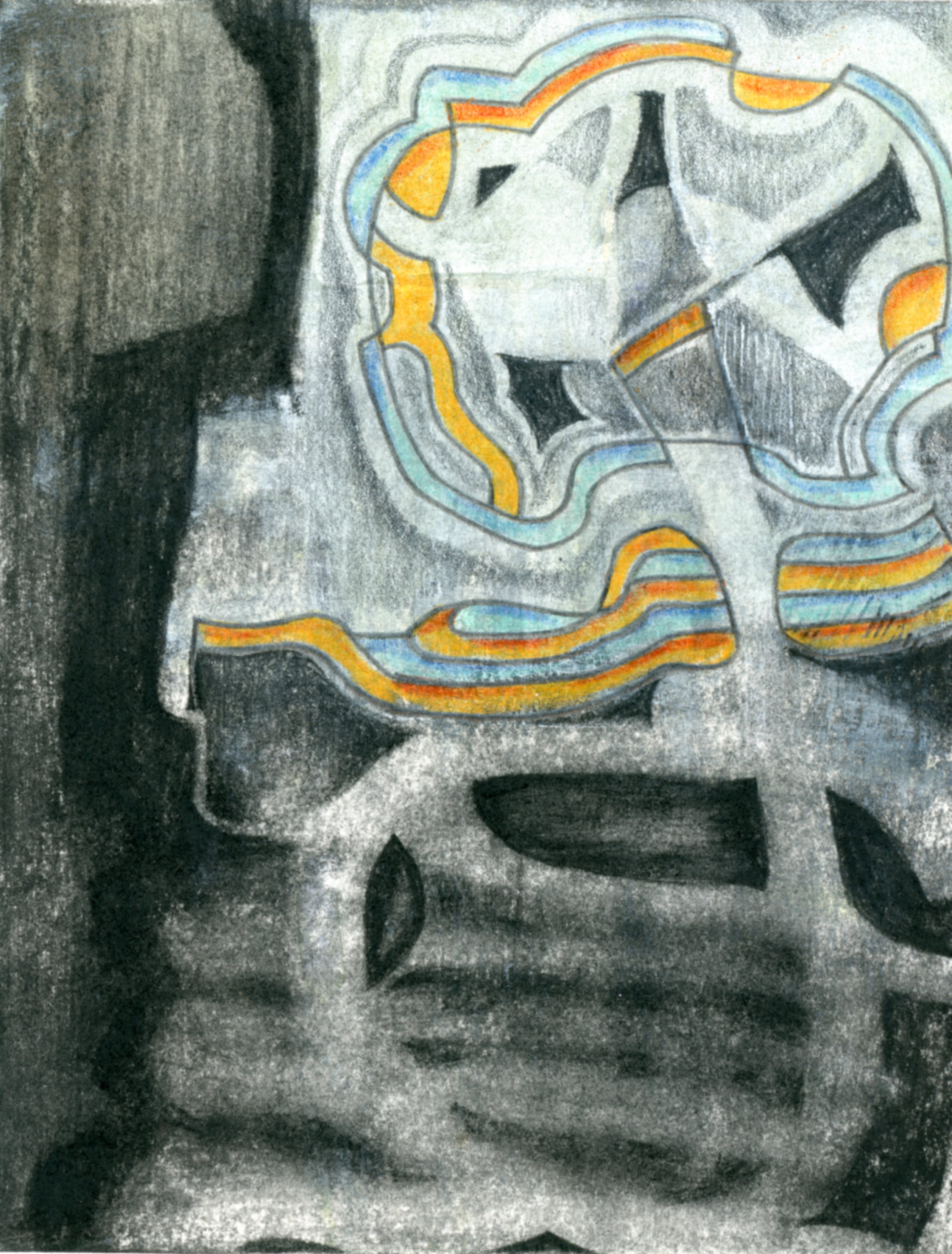 charcoal and colored pencil on paper, 6” x 4.5”