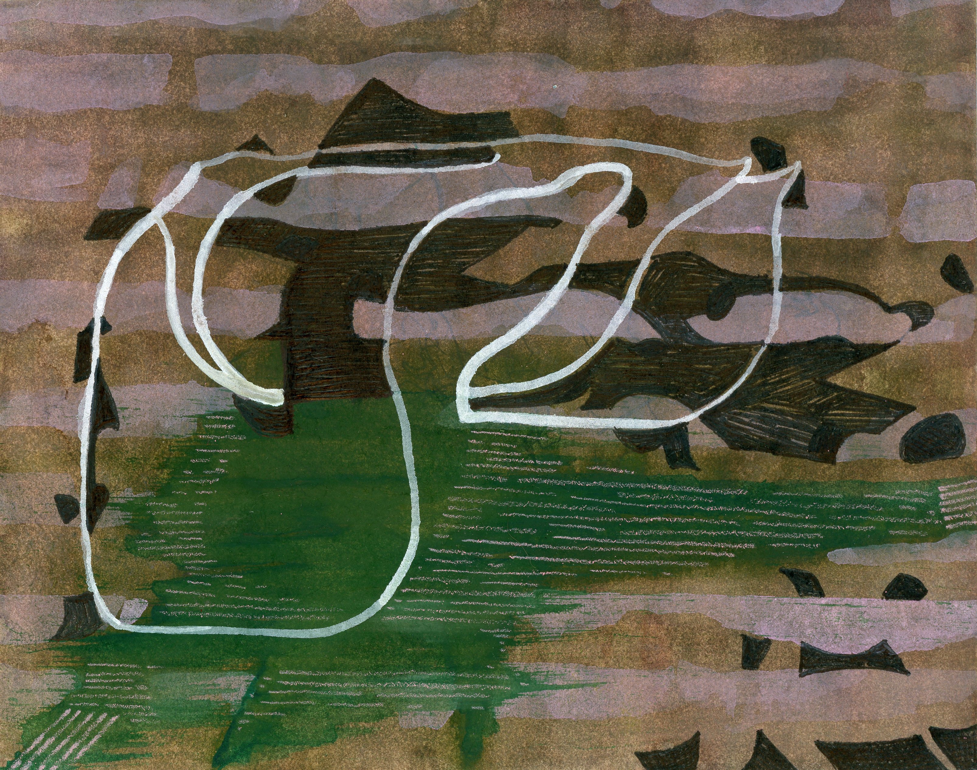watercolor, pen, colored pencil, and gouache on paper, 4.5” x 6”