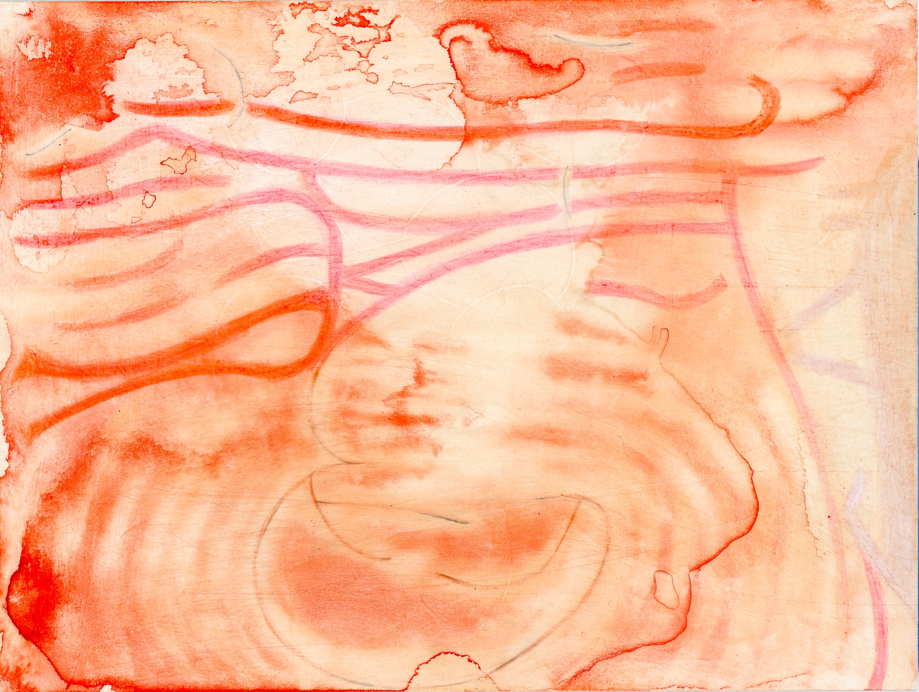 watercolor, colored pencil, and pencil on plastic, 4.5” x 6”
