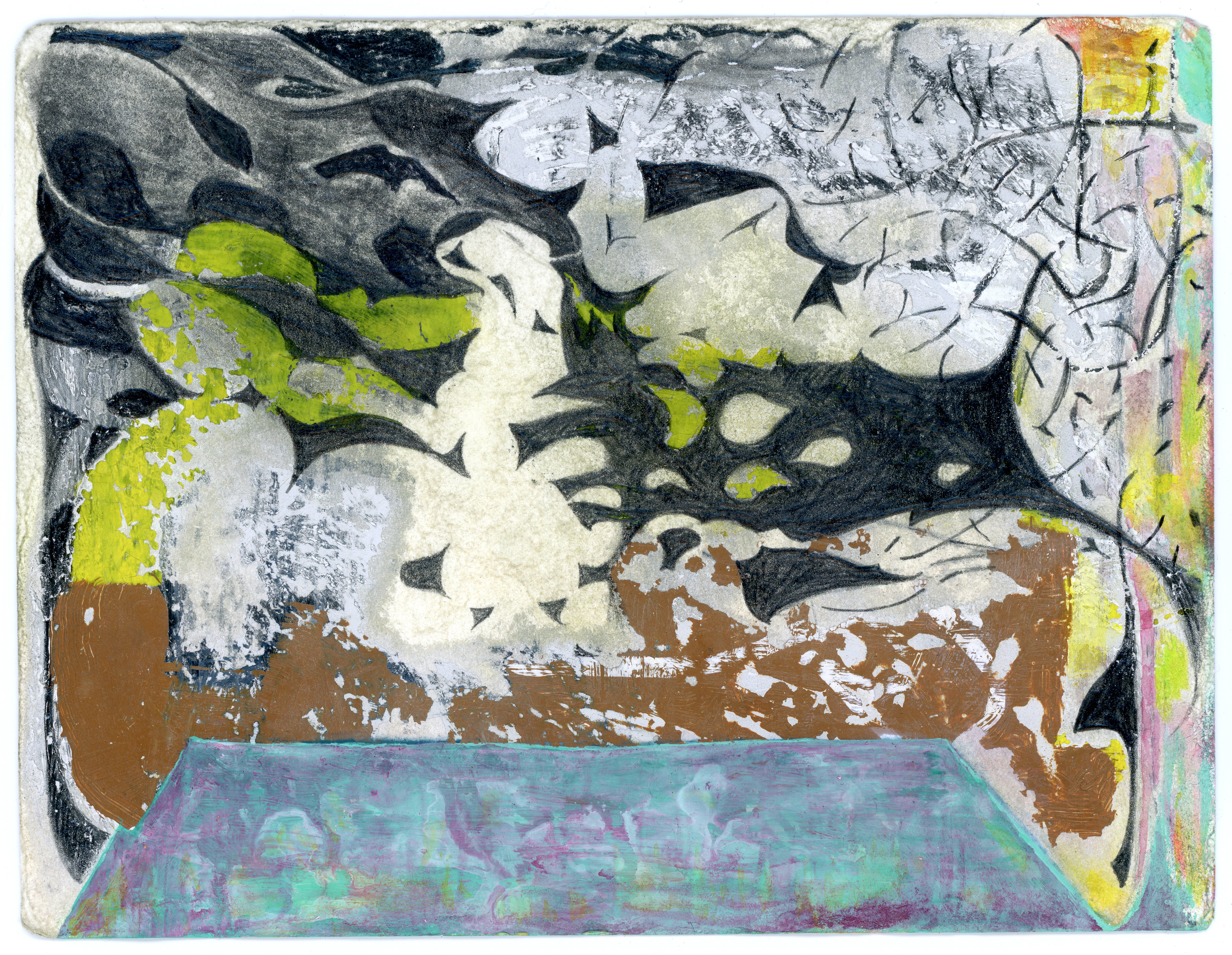 pencil, enamel, and gouache on paper, 4.5” x 6”