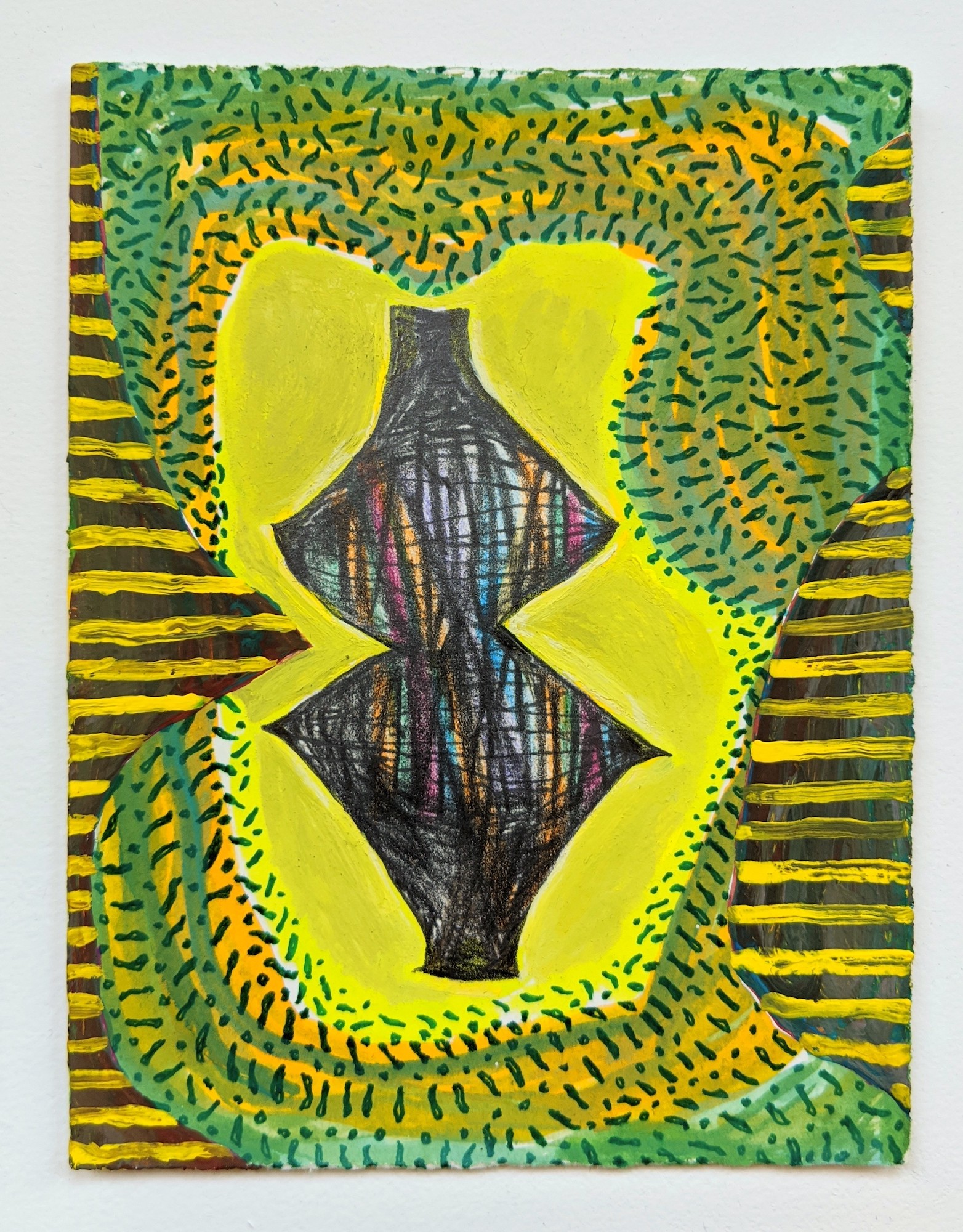 colored pencil, gouache, marker, and pencil on paper, 6” x 4.5”